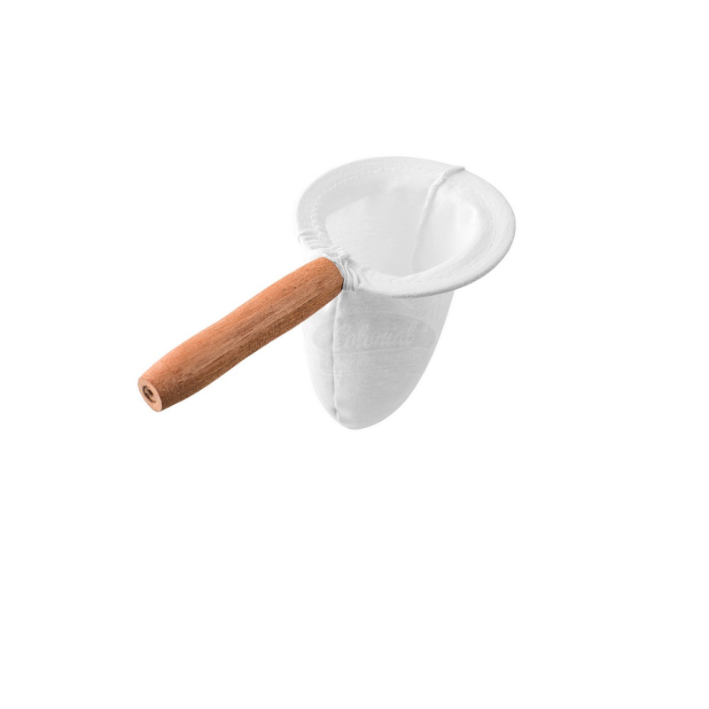 Composição: Filtro em malha 100% algodão. Arame em aço galvanizado. Cabo em madeira torneada de eucalipto (reflorestada).
